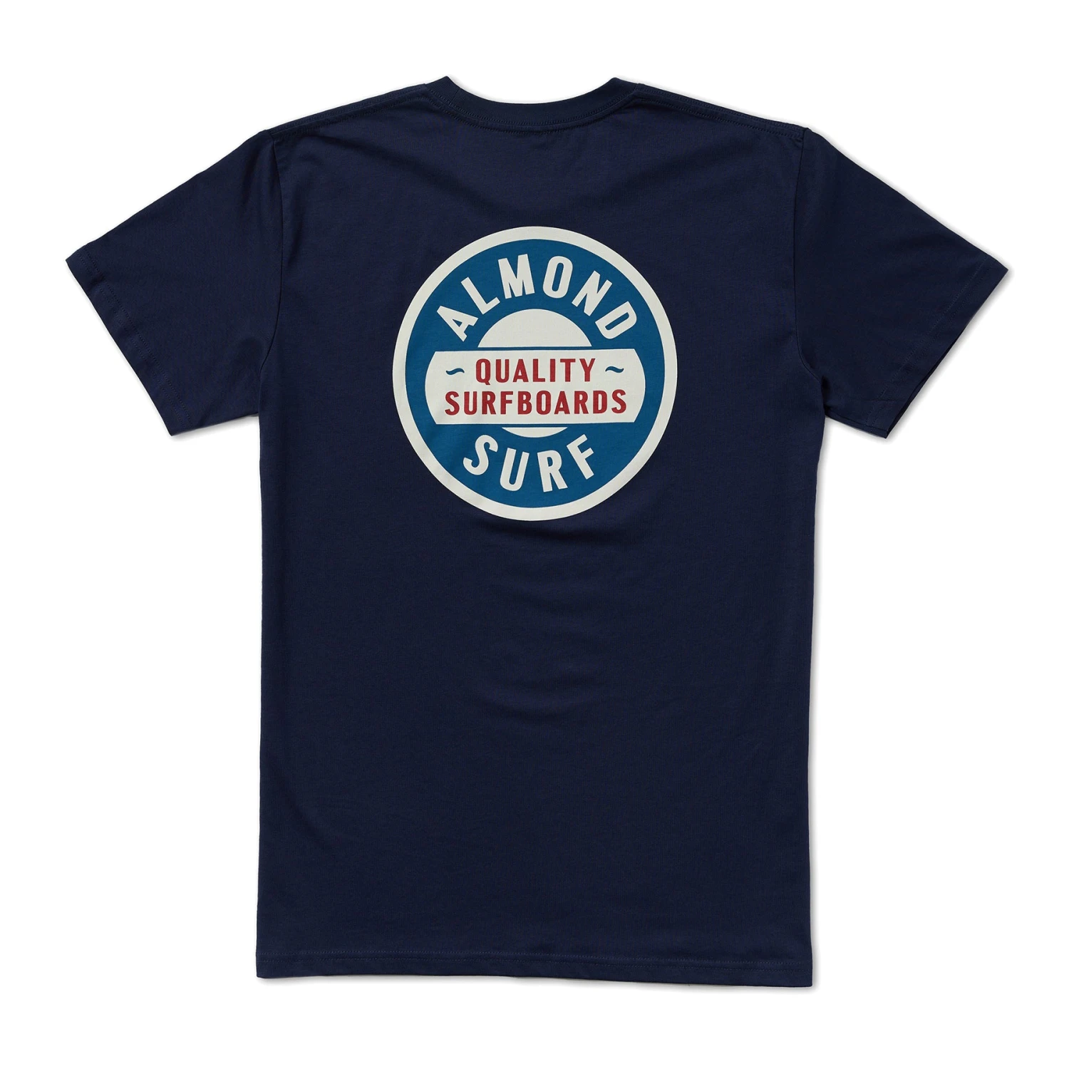 Expertly printed in California, this 100% cotton navy tee features the new almond surfboards badge logo, showcasing the brand’s commitment to quality and style. Illustrated by Steve Wolf for Almond Surfboards.