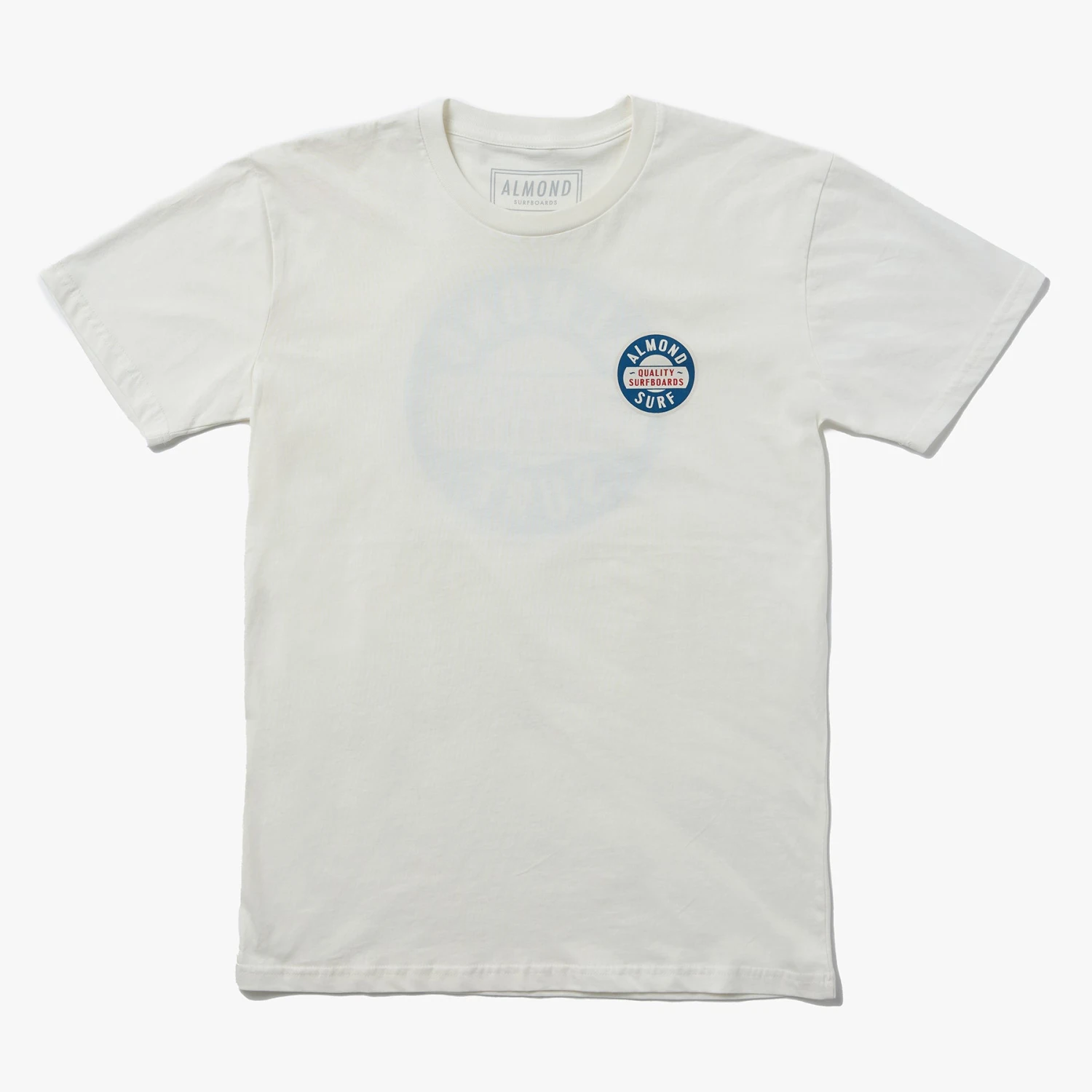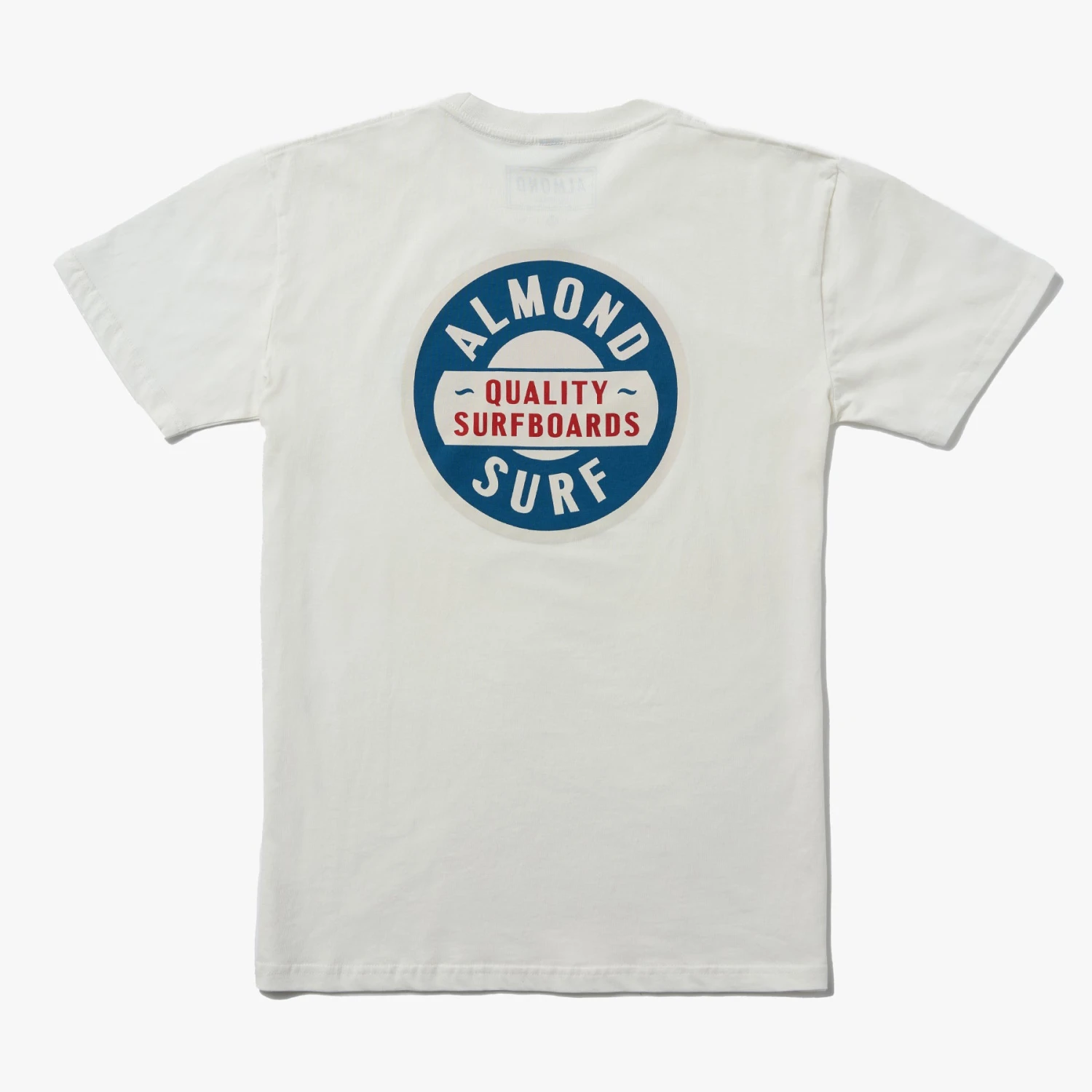 Expertly printed in California, this 100% cotton natural tee features the new almond surfboards badge logo, showcasing the brand’s commitment to quality and style. Illustrated by Steve Wolf for Almond Surfboards.