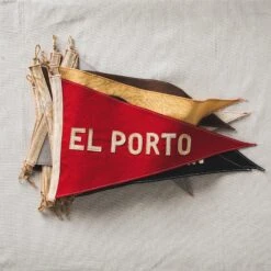 Each flag is hand-painted, stitched and prepared to be hung with photo, art or object collections