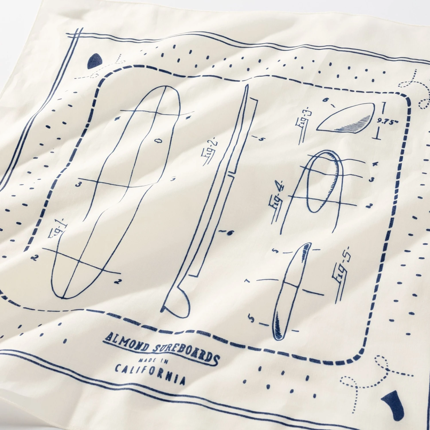 22″ x 22″ Bandana hand-printed in California, with our “Tech Specs” Surf Thump graphic. Â Bandanas are handy to keep around the workshop, or tucked in your pocket.